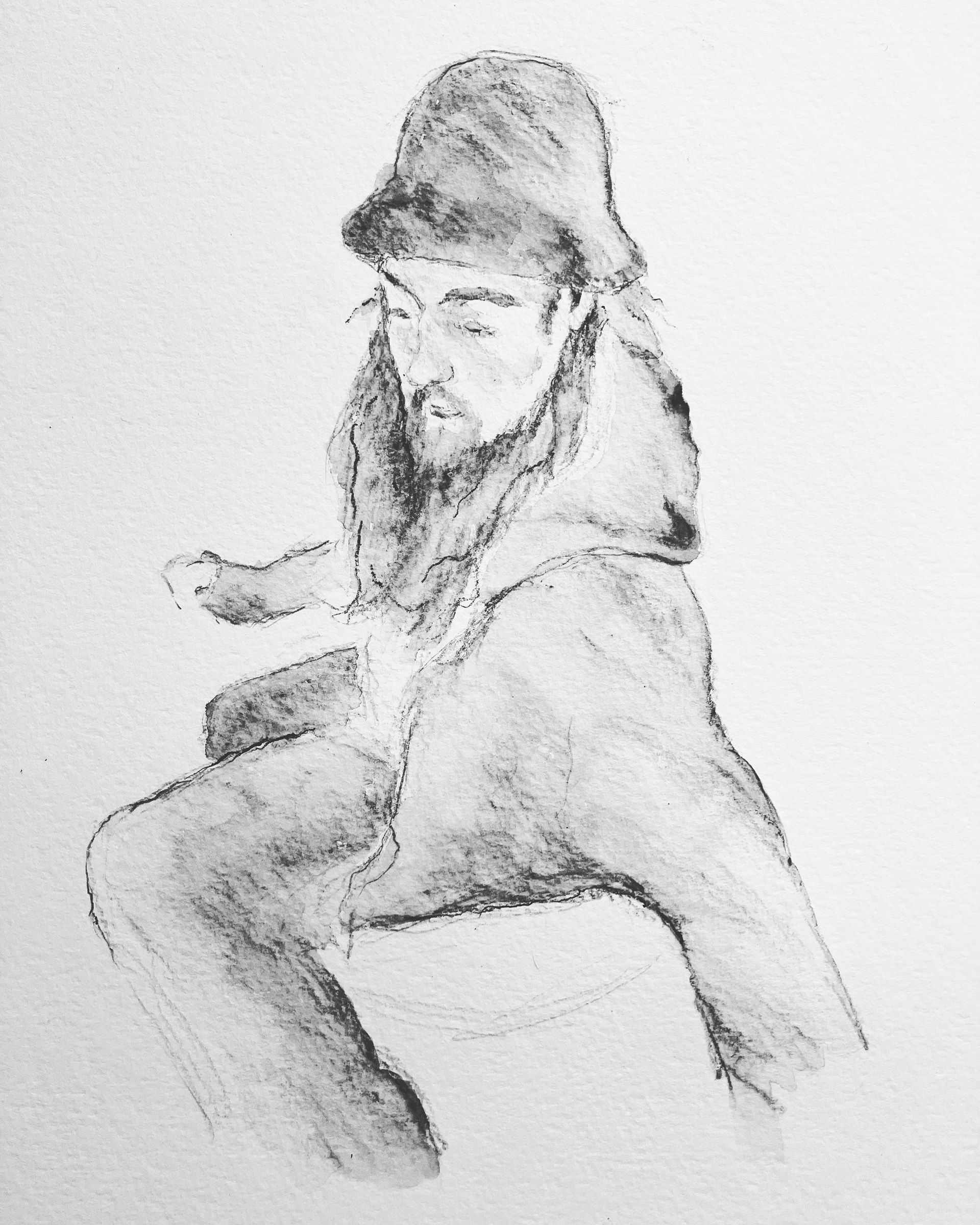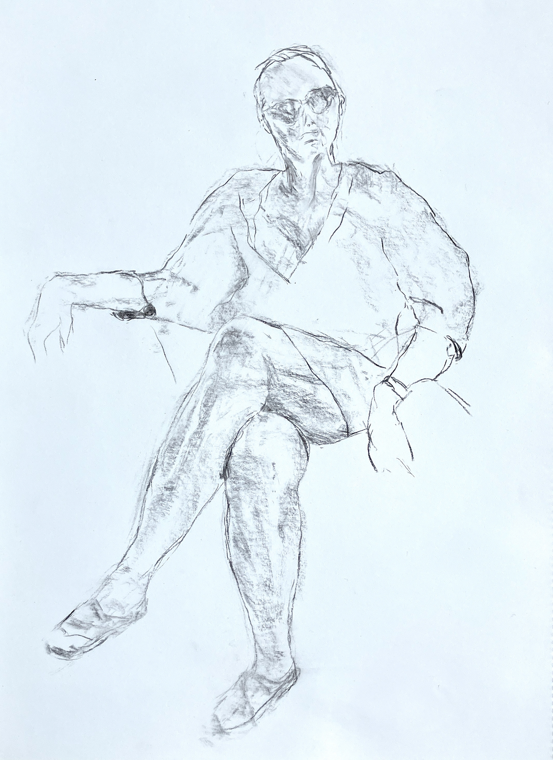 As a figurative artist, Andy Roberts does not always aim to capture a likeness, preferring to focus on creating expressive drawings, often adopting an unusual perspective. He works from life and photographs. Whilst often drawing family and friends, he also draws others from memory and imagination using charcoal, pencils, ink, pastels and paint.